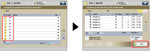 Seleccione el tipo de buzón que desee → pulse [Leer].
