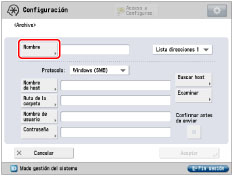 Si está activado [Cambio de idioma/teclado] en [Preferencias] (Configuración), puede que el nombre de host y la ruta de carpeta no se muestren correctamente, por lo que es posible que no pueda acceder a ellos.
