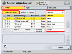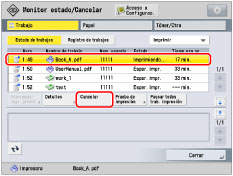No es posible seleccionar varios trabajos y cancelarlos de una sola vez. Seleccione y cancele los trabajos de uno en uno.