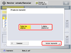 Si la copia restante es la última o casi la última, no podrá realizar prueba de impresión de toda la copia seleccionando [Todas las páginas].