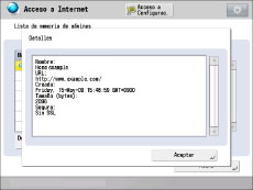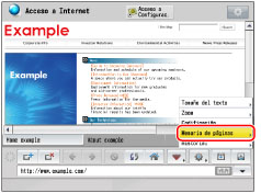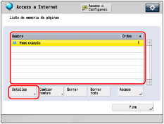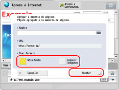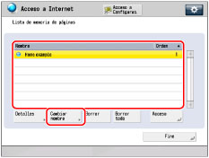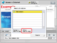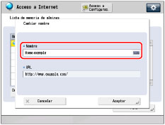 Puede cambiar el nombre y la URL. Si cambia la URL, los contenidos de la pantalla guardada no cambian. La pantalla que se está mostrando en ese momento se guarda como una memoria de páginas.