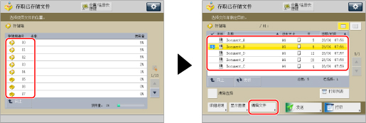 (主菜单)→[存取已存储文件]→[存储箱]。