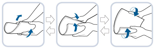 如果纸张卷曲,请使用前将卷曲的纸张展平,如下所示。