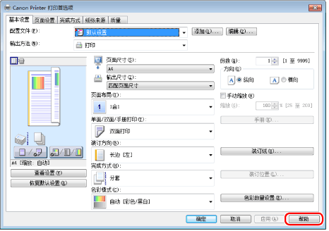 可以通过在打印机驱动程序屏幕上单击[帮助]显示帮助。