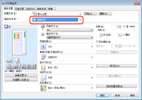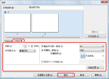 如果要编辑已合并文件的打印设置,单击[打印设置]→指定所需的设置→单击[组合]。