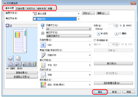 在打印机设置屏幕中指定所需的设置→单击[确定]。