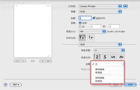选择打印机→[布局]→从[每张页数]中选择要打印在一张纸上的页数。