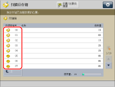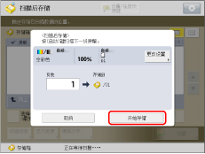 一次最多可以扫描并存储999页。如果使用输稿器扫描双面原稿,最多可以存储1,000页。一旦达到可以扫描的原稿的最大数量,则会出现一条信息询问是否存储。