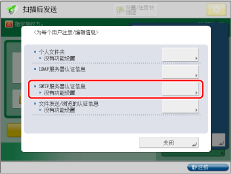 可以在[扫描后发送]“基本功能”屏幕、[存取已存储文件]“发送”屏幕和[传真/互联网传真收件箱]“发送”屏幕上的