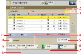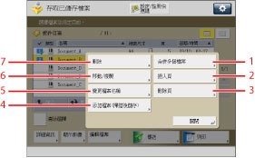 有關[添加檔案(掃描後儲存)]的操作步驟和操作「掃描」螢幕的說明,請參閱"添加檔案(掃描後儲存)"和"掃描後儲存操作流程."