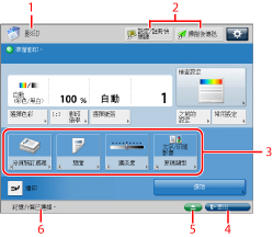 可以透過按[掃描後傳送]「基本功能」螢幕、[傳真]「基本功能」螢幕、[存取已儲存檔案]「傳送」螢幕和[傳真/網際網路傳真收件匣]「傳送」螢幕右上方的