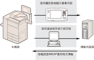 有關如何安裝和解除安裝MEAP應用程式的說明,請參閱"安裝應用程式"和"解除安裝應用程式."