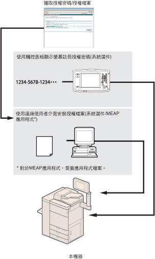 根據系統選件/MEAP應用程式,可能需要註冊授權。