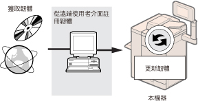 可以從「遠端使用者介面」使用「註冊/更新軟體」功能將本機器的韌體更新到最新的版本。