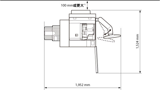 *2 若未安裝「Paper Folding Unit-F1」、「Professional Puncher-B1」、「Document Insertion Unit-M1」、「Multi-drawer Paper Deck-B1」、「Perfect Binder-D1」或「High Capacity Stacker-G1」中的任一個,確保提供至少100 mm大小的空間。
