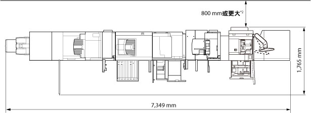 *1 若安裝一個或多個以下組件,確保提供至少800 mm大小的空間:「Paper Folding Unit-F1」、「Professional Puncher-B1」、「Document Insertion Unit-M1」、「Multi-drawer Paper Deck-B1」、「Perfect Binder-D1」或「High Capacity Stacker-G1」。