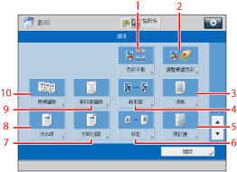顯示後一螢幕或前一螢幕。這些螢幕顯示所有特殊影印模式。