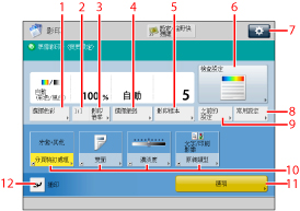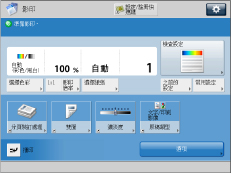 可以從「常規影印基本功能」螢幕和「快速影印基本功能」螢幕執行相同的操作。從「設定/註冊」螢幕設定要顯示的螢幕。(See "切換基本影印功能螢幕.")