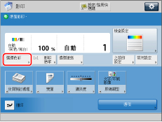 若[選擇影印色彩設定]中的[使用自動(彩色/黑白)]設定為「關閉」,則不會顯示[自動(彩色/黑白)]。(See "限制使用自動色彩選擇.")