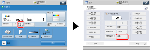 若要取消該設定,請按[影印倍率]→[海報]→[取消]。