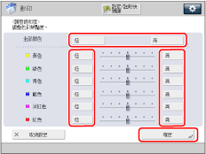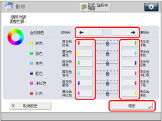 可以在[全彩列印逼真化設定]中變更「全彩」模式的色彩(及其色調)。(See "使用全彩列印創建更加鮮豔的色彩.")