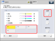 若沒有輸入任何字元就按[確定],則按鍵名稱會恢復為現行名稱(預設為C1到C4)。