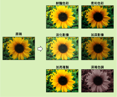 只需單觸某一按鍵即可以透過選擇影像外觀進行影印或列印。可以使用以下六種選項。