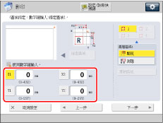 若使用編輯筆指定區域,則輸出影像可能無法準確地反映指定區域。若要準確地指定區域,請使用數字鍵輸入數值。
