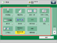 若「預覽」模式設定為「開啟」,則可以在傳送文件前在「預覽」螢幕中核對影像。(See "預覽.")
