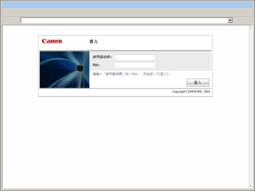 輸入「部門識別碼」/「密碼」或「系統管理員識別碼」/「系統PIN」登入「遠端使用者介面」或MEAP應用程式(包括登入應用程式)。