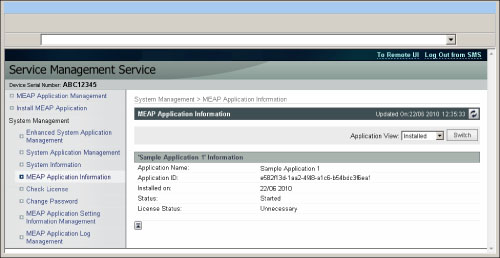 按一下[MEAP Application Information](MEAP應用程式資訊)。