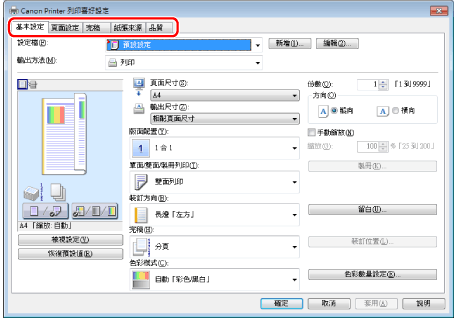 根據作業系統以及印表機驅動程式的類型和版本,顯示可能有所不同。