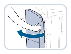 清除騎馬裝訂單元中的卡針前,請從書本紙盤取出所有輸出紙張。