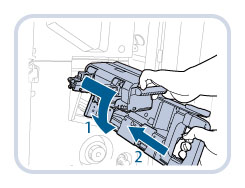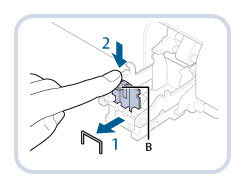 清除卡針後,請務必手動定位騎馬裝訂單元中的裝訂針。(See "騎馬裝訂單元裝訂針定位.")