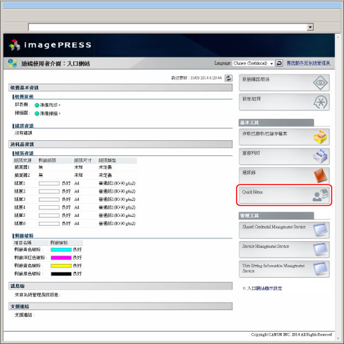 只有「系統管理員」或「SSO-H系統管理員」(Administrator)/「網路管理員」(NetworkAdmin)/「裝置管理員」(DeviceAdmin)可以操作「自訂功能表」頁面。有關管理員類型的資訊,請參閱"管理員設定."
