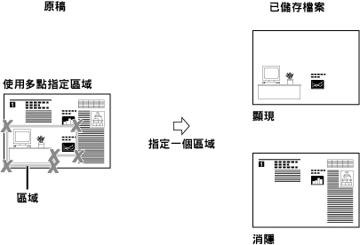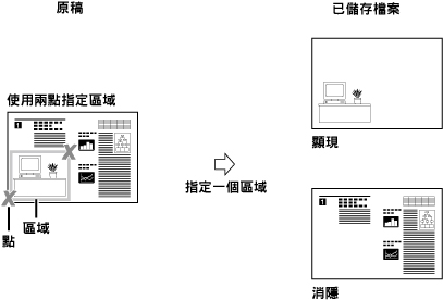 僅儲存指定區域中的內容而忽略原稿的其餘部分。