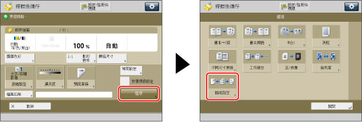 若要縮放原稿的任何區域,請按縮放倍率下拉清單→選擇放大倍率→按[