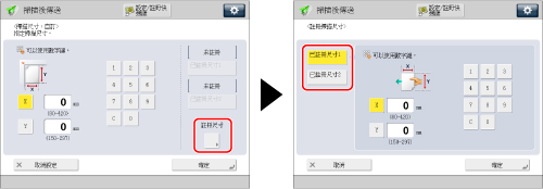 →[掃描後傳送]→指定接收者→按掃描尺寸按鈕。
