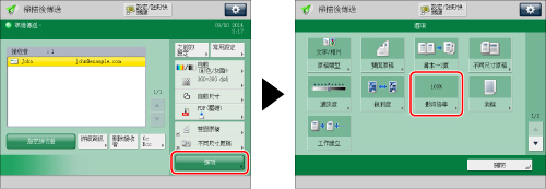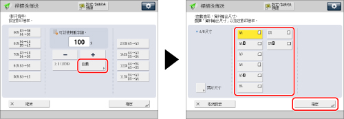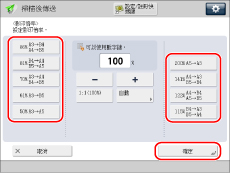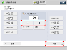 若設定「PDF(輪廓)」、「PDF(壓縮)」、「PDF(OCR)」、「XPS(壓縮)」、「XPS(OCR)」或「OOXML」作為檔案格式,則只能以[1:1(100%)]或[自動]的縮放倍率傳送。