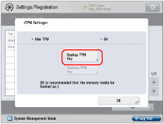 TPM提供的安全性不保證完全保護資料和硬碟。請注意,對於因使用該模式所導致的任何故障或損失,Canon不承擔任何責任。