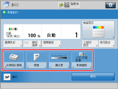 可以將模式註冊到「影印」螢幕上顯示的快速鍵中。最多可以從[選項]和[常用設定]註冊五個所需按鈕。