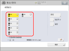 添加標準尺寸紙張時,若[自訂]顯示為紙張尺寸,請按[自訂尺寸]→[取消設定]。正確的紙張尺寸會被自動偵測並在螢幕上顯示。