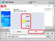可以選擇[Small](小)、[Medium](中)或[Large](大)。預設文字尺寸為「Medium」(中)。