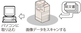 コンピューターに画像を取り込むことができます。本製品の原稿台を、最大A3サイズ600dpiのスキャナーとして利用できます。
