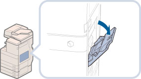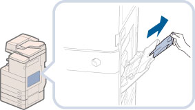 ![]() 手差しトレイを使って、すでに一度コピー/プリントされている用紙の裏を再度コピー/プリントに用いる場合は、用紙のカールをなおし、コピー/プリントする面を裏向きにセットしてください。