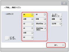 インチサイズを選択する場合は、[インチサイズへ]を押します。