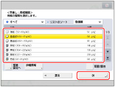 用紙種類の選択の詳細設定のリストにない用紙の種類を登録できます。「用紙種類の管理設定をする」を参照してください。