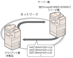 本製品はクライアント機として、ネットワーク上のサーバー機にアクセスして、サーバー機のアドレス帳から宛先を検索/指定できます。