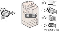 あらかじめ設定した条件に一致するIファクス文書を、指定の宛先に、お好みの送信設定で転送できます。また、受信したIファクス文書を他の機器に転送する「中継」や、転送先に任意のファクスボックスを指定する「親展」が可能です。タイマーを設定して転送設定が有効になる時間を指定することもできます。さらに、本製品では、条件に一致しなかったIファクス文書の転送先も指定しておくことができるので、受信した文書の仕分け配信機能として利用できます。
