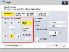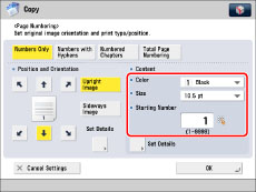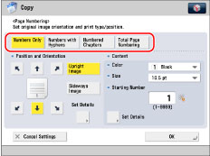 If you use [Page Numbering] with [Add Cover] or [Insert Sheets], numbers will not be printed on the inserted pages.